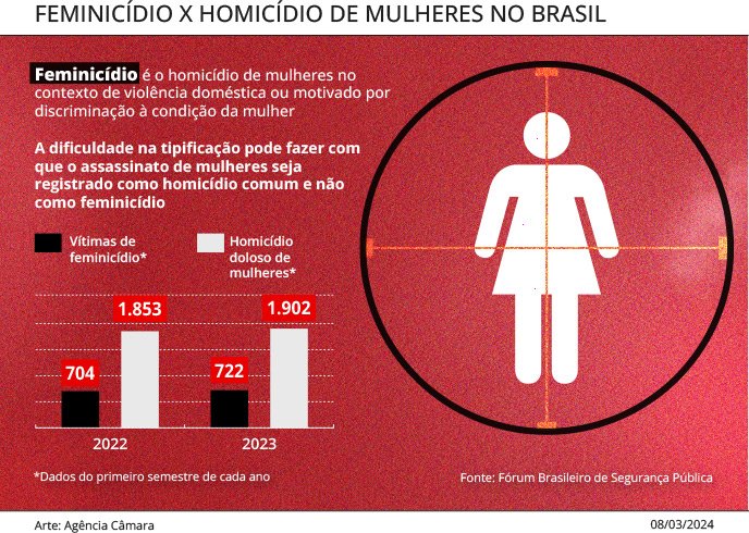 Proposta transforma o feminicídio em crime autônomo e continua tramitando na Câmara dos Deputados.