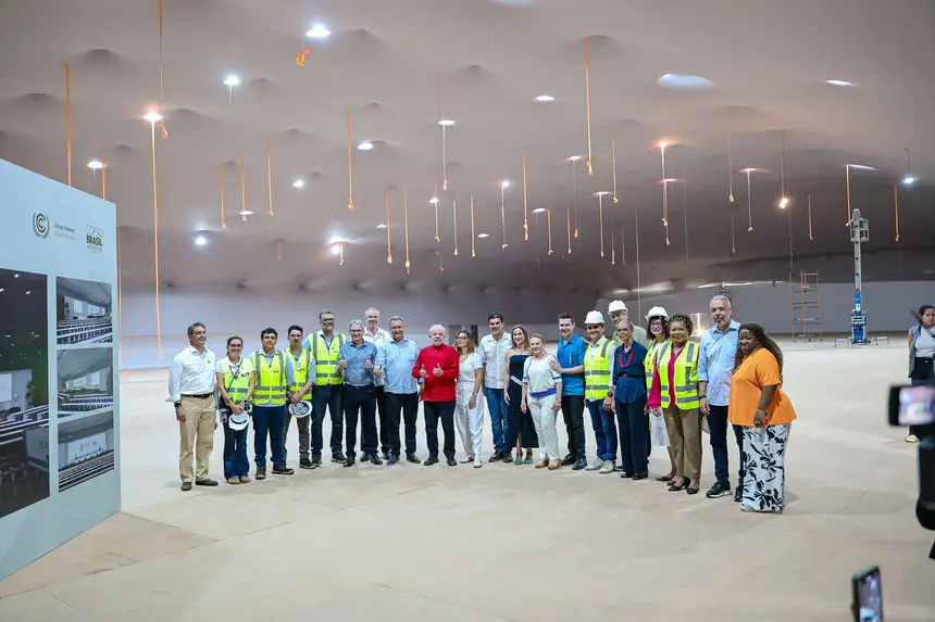 Durante a agenda, Helder apresentou ao presidente os equipamentos do complexo — como o Centro Gastronômico e o Centro de Economia Criativa — e conduziu a comitiva pelas áreas onde estão sendo erguidos os pavilhões da Blue e da Green Zone. As frentes de trabalho seguem em ritmo acelerado. Mais de 90% das estruturas modulares já estão montadas, 85% do piso especial foi instalado, a área de credenciamento e o acesso VIP estão concluídos e a montagem dos estandes internos segue em execução.