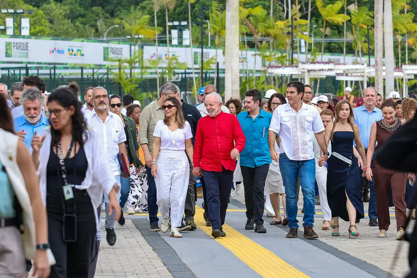 O governador Helder Barbalho e o presidente Luiz Inácio Lula da Silva visitaram, na manhã desta sexta-feira (03), o Parque da Cidade para acompanhar a fase final de montagem das estruturas temporárias para a Conferência das Partes sobre Mudanças Climáticas da ONU (COP 30), em Belém. Até agora, 55 mil pessoas já se inscreveram para participar da conferência.