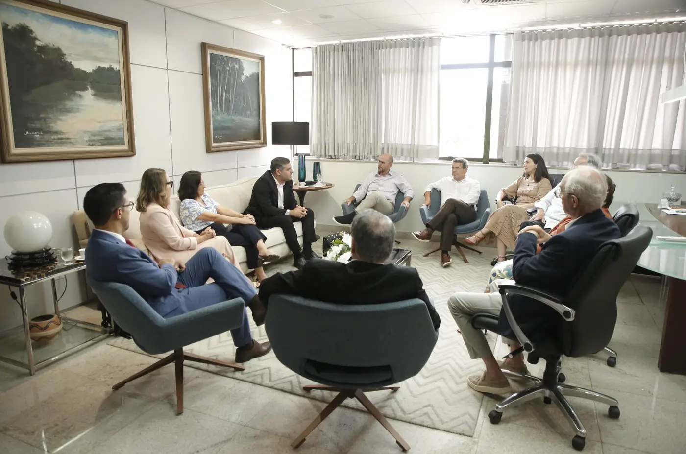 Participaram da reunião o presidente do TCM, Lúcio Vale; o secretário adjunto de Gestão de Rede e Regime de Colaboração (Sarc) da Seduc, Diego Maia; a coordenadora do programa Alfabetiza Pará, Carla Reis; além de conselheiros e técnicos do Tribunal.