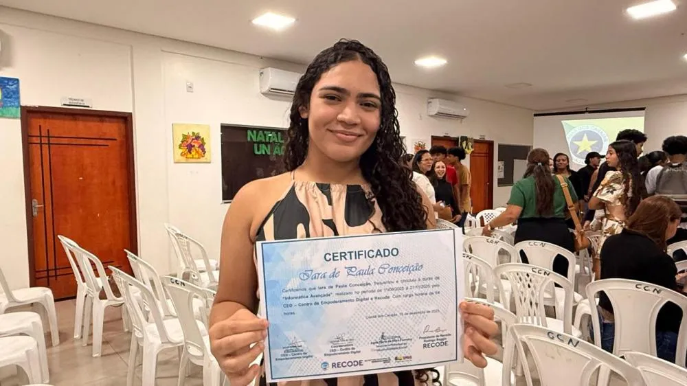 A jovem estudante Maria Eduarda Aquino, de 14 anos, também aproveitou a iniciativa e concluiu o curso de Informática Avançada. Animada, ela destacou a metodologia aplicada pelos professores e afirmou que o aprendizado será decisivo para seus planos futuros na área administrativa.
