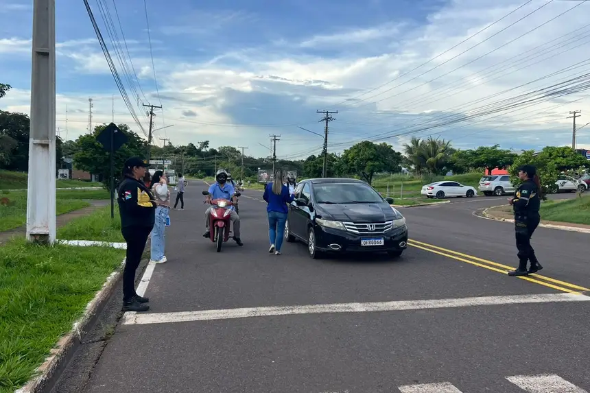 Durante a blitz, motoristas e pedestres receberam panfletos informativos sobre o Transtorno do Espectro Autista e a importância de uma convivência mais acolhedora e inclusiva.