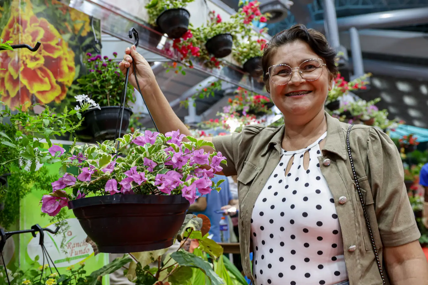 A frequentadora Francisca Magalhães comprou Rosa do Deserto, Boca-de-leão e Rosas. “Eu moro em apartamento, mas sempre compro plantas. Vim pela primeira vez ao Festival e estou amando a variedade de plantas. Ano que vem volto, com certeza!”, adianta.