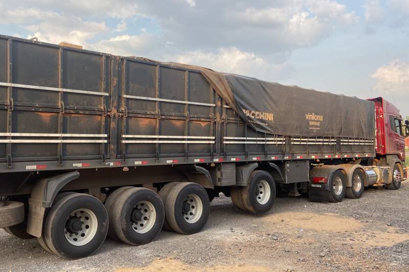Os servidores desconfiaram de carga escondida no caminhão, pois o caminhão estava com a caçamba baixa, sinalizando muito mais peso