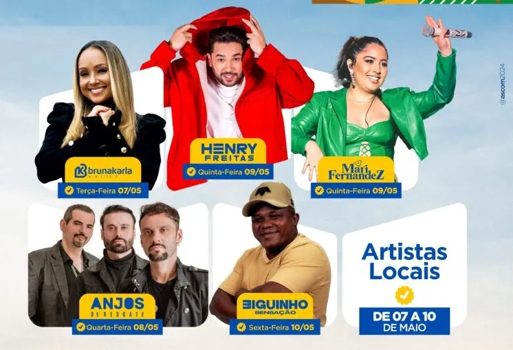 Cinco atrações nacionais foram confirmadas para celebrar o aniversário da cidade, além de artistas locais, no Parque de Exposições.