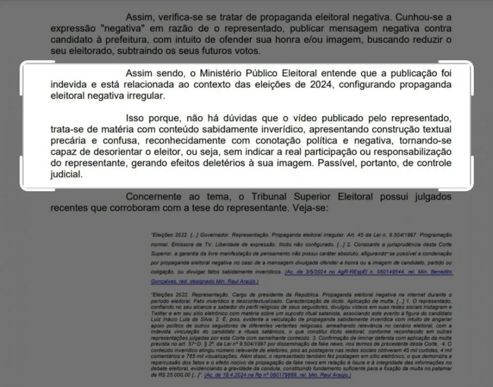 Na decisão, a juíza destaca o perigo de manipulação do eleitor com esse tipo de publicação: “o risco de propagação da publicação manipula o eleitor e proporciona, inequivocamente, insegurança ao processo eleitoral que deve ser imparcial e sólido”.