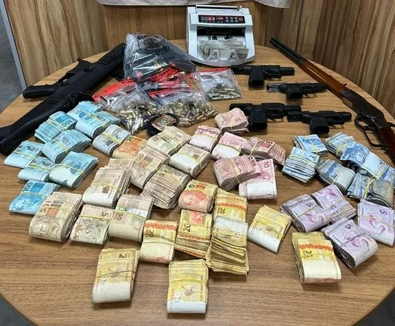 Durante a operação federal foram apreendidos cerca de R$ 200 mil em espécie, armas e até uma máquina de contar dinheiro.