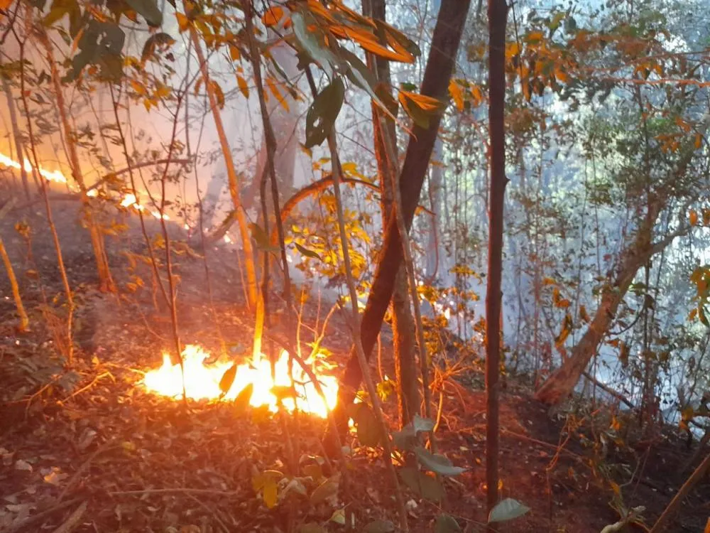 Por causa do tempo seco, as altas temperaturas contribuem para que as chamas se alastrem com muita rapidez pela vegetação densa da floresta, colocando em risco a fauna e flora da região.