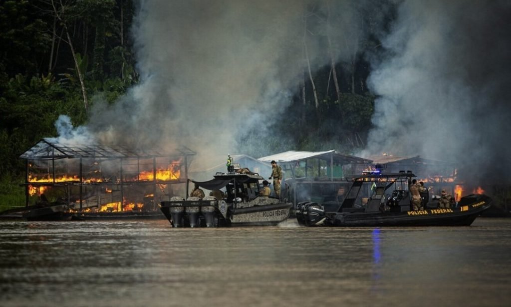 Balsas de garimpeiros ilegais são incendiadas pela Polícia Federal e Ibama no Rio Madeira