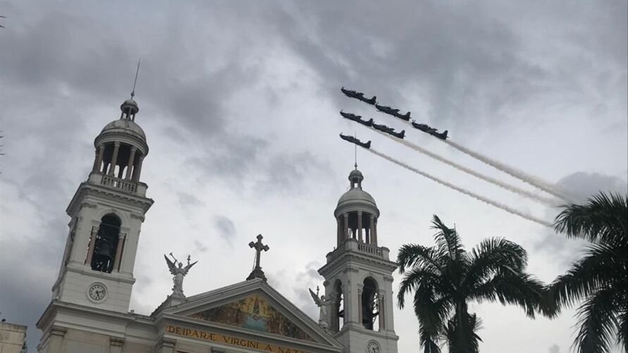 Primeira apresentação da Esquadrilha de fumaça no Círio de Nazaré impressiona devotos na tarde deste sábado